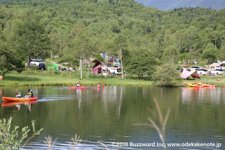 テントの近くには池がありカヤックを楽しんでいる方がいました。小学校3年生以上からなのでまだ娘は利用できませんでしたが、気持ちよさそうなのでいつかやってみたいですね。池の反対側に見えているのばBエリアです。